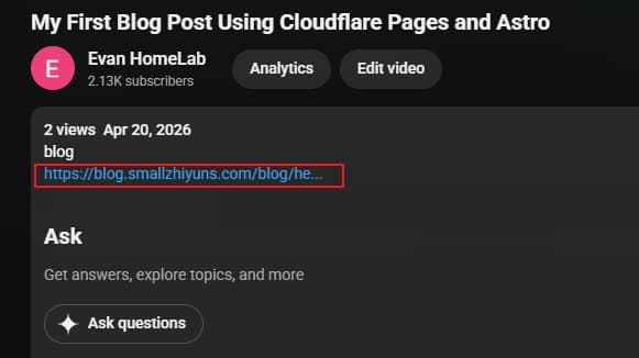 For instance, as shown in the image below, I included a link to my corresponding blog within the description of one of my YouTube videos, but it proved to be ineffective.